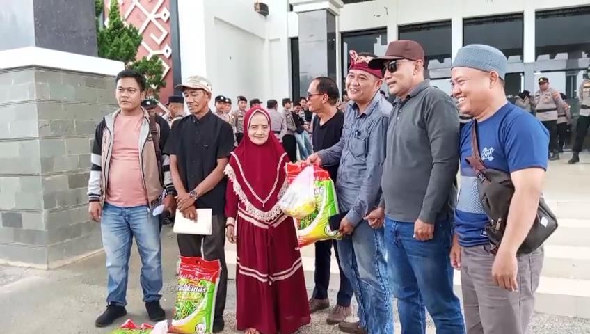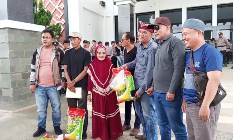 Di hadapan aparat kepolisian yang berjaga, para jurnalis berdiri berdampingan dengan para lansia, sembari menyerahkan kantong-kantong beras. Sebuah potret penuh makna—di balik kerasnya tuntutan terhadap pejabat publik, masih ada wajah lembut kemanusiaan yang tak boleh hilang dari nurani.