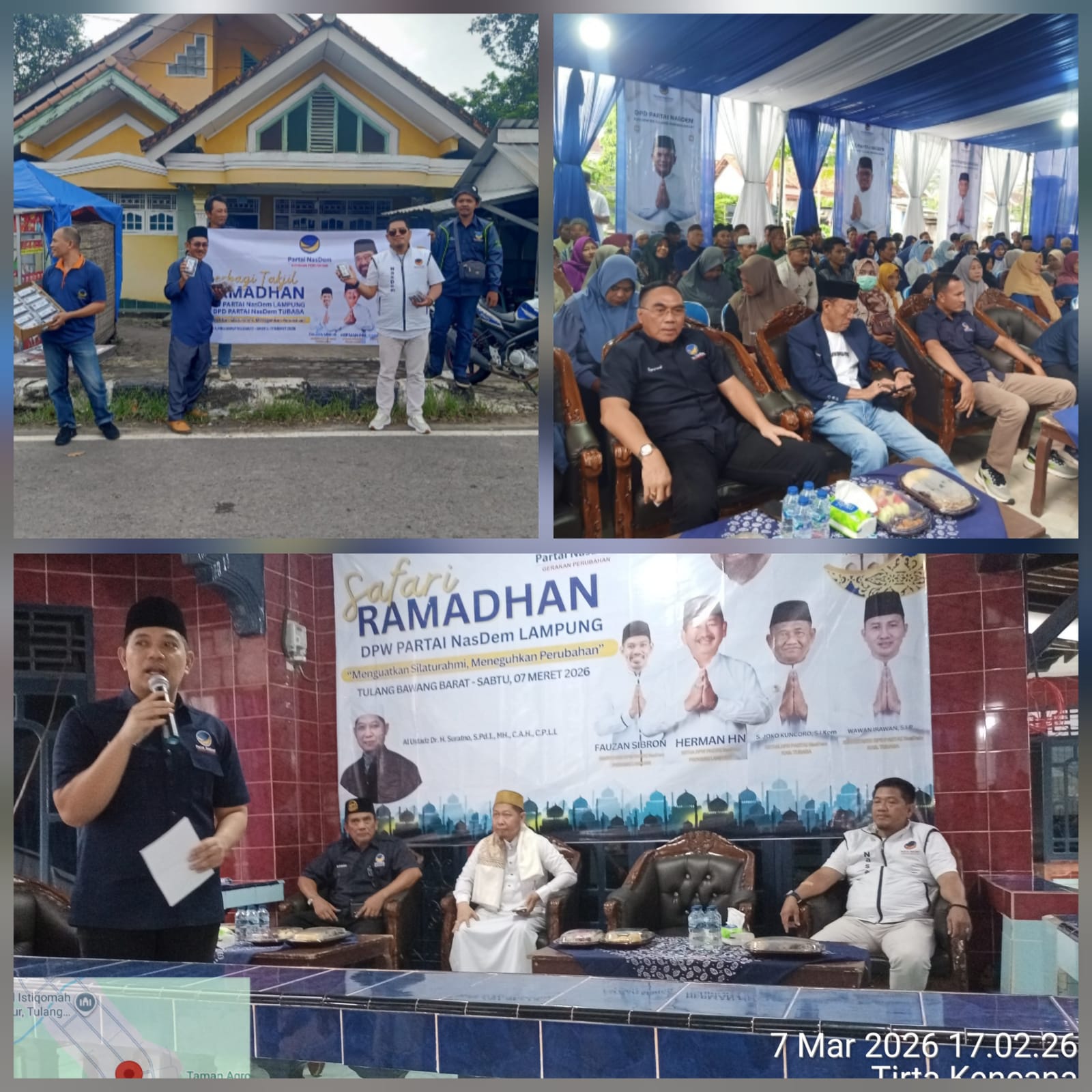 Tulang Bawang Barat–7Menit.com-Dewan Pimpinan Daerah (DPD) Partai Nasdem Kabupaten Tulangbawang Barat, Lampung menggelar Safari Ramadhan dan Berbagi takjil.
