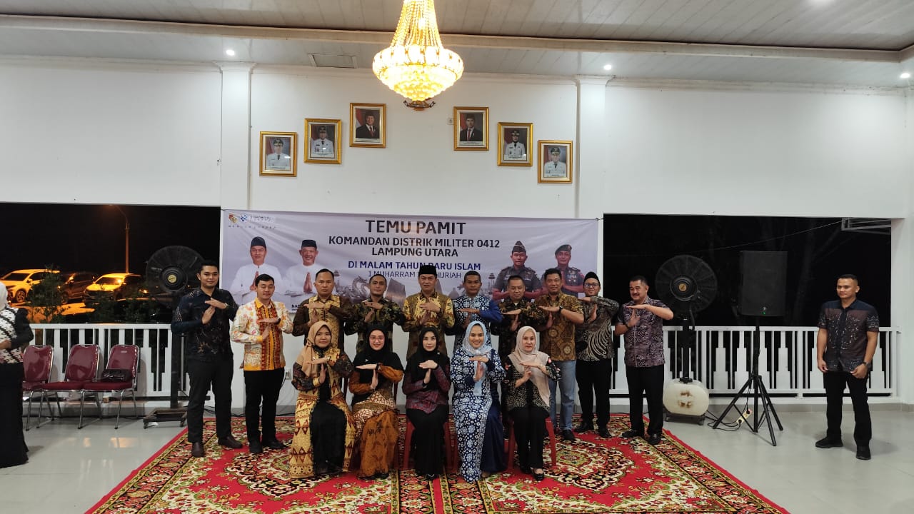 Pisah sambut Dandim 0412 Lampung Utara dari Letkol Inf Hery Eko Prabowo kepada Dandim 0412/LU kepada Letkol Inf Roni Faturohman, berlangsung pukul 21.00 Wib bertempat di Aula Rumah Dinas Bupati Kel. Panaragan Jaya, Kec. Tulang Bawang Tengah Kab. Tulang Bawang Barat. Kamis (26/06/2025)