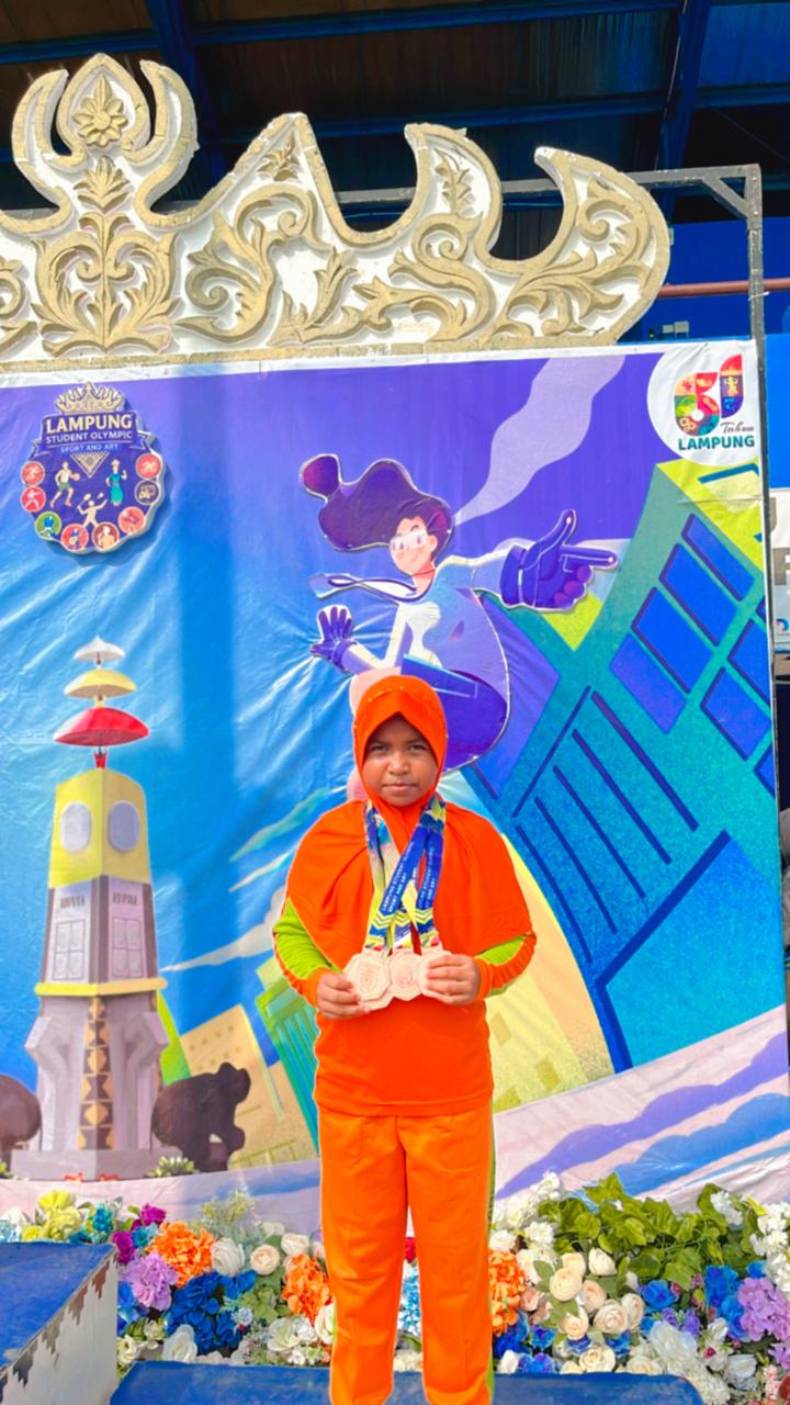 Tulang Bawang Barat- 7Menit.com -Kalle Amora Azzazamoza Warga Kabupaten Tulangbawang Barat yang merupakan Atlit renang meraih 4 medali perunggu dalam ajang Champion renang yang di selenggarakan oleh Dispora Provinsi Lampung dalam Event Lampung Student Olympic, di selenggarakan di Gedung Pahoman Bandar Lampung, Pada Hari Jum’at (25/7/2025).