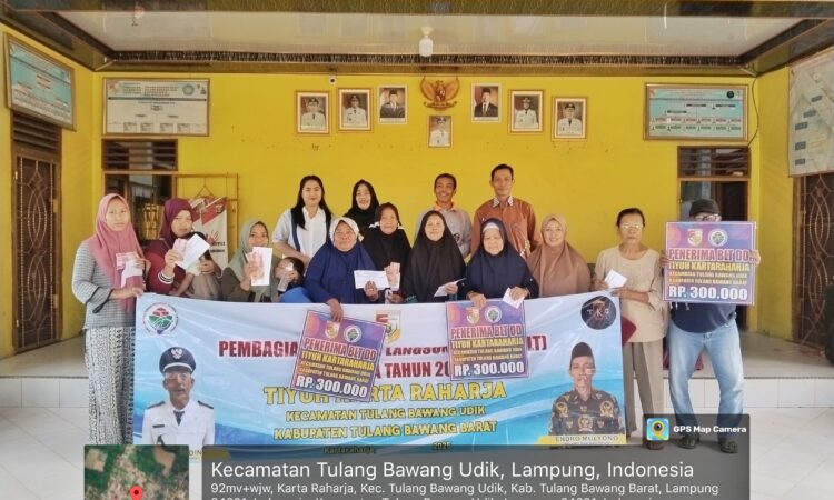 Tulang Bawang Barat–7Menit.com-Pemerintah Tiyuh Karta Raharja, Kecamatan Tulang Bawang Udik, Kabupaten Tulang Bawang Barat, menyalurkan Bantuan Langsung Tunai (BLT) untuk bulan September 2025 kepada 15 Keluarga Penerima Manfaat (KPM), Senin 12/09/2025).