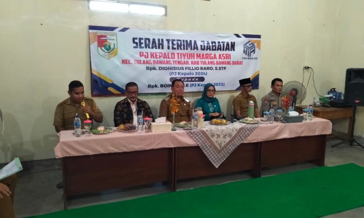 Tulang Bawang Barat–7Menit.com-Prosesi serah terima jabatan Penjabat (PJ) Kepalo Tiyuh Marga Sari, Kecamatan Tulang Bawang Tengah, Kabupaten Tulang Bawang Barat, resmi dilaksanakan di Balai Tiyuh Marga Sari, Senin (15/9). Jabatan tersebut diserahterimakan dari Dionisius Fillio Raro, S.STP (PJ Kepalo Tiyuh 2024) kepada Boiman, SE (PJ Kepalo Tiyuh 2025). Senin(15/9/2025)