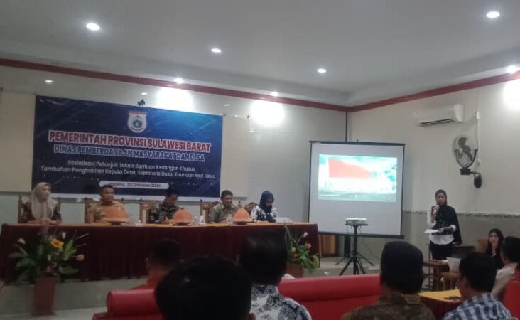 Majene-sulbar–7menit.com-Dinas pemberdayaan masyarakat dan desa (PMD) propinsi sulawesi barat melaksanakan sosialisasi teknis bantuan keuangan khusus (BKK) tambahan penghasilan kepala desa,sekdes,kaur,dan kasi desa.selasa,02/10/2025 di hotel B’nusabila.