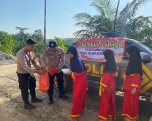 Tulang Bawang Barat–7Menit.com-Dalam semangat berbagi di hari Jumat yang penuh berkah,Personil Polsek Lambu Kibang, Polres Tulang Bawang Barat Polda Lampung membagikan nasi kotak kepada Santri